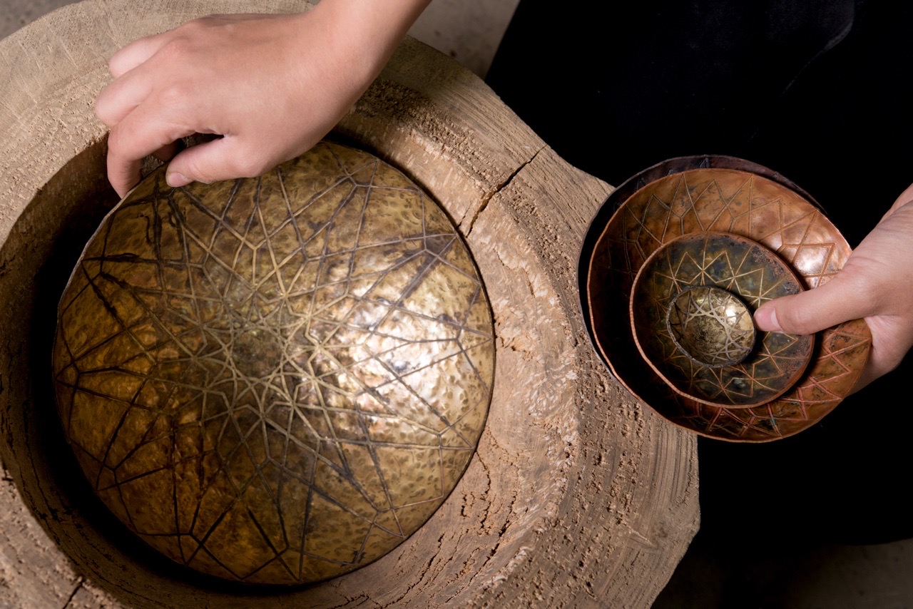 | Credits | Product Design | Kawther Alsaffar Pattern Design | Chourouk Zarkaoui Metal Engraving | Neon Center Mould Making | WoodEx Tin Plating | Ahmed Al Saffar Metal Sinking | Ghandi and Other’s in Souq Al Saffar Photography | Mohamad Chehimi |