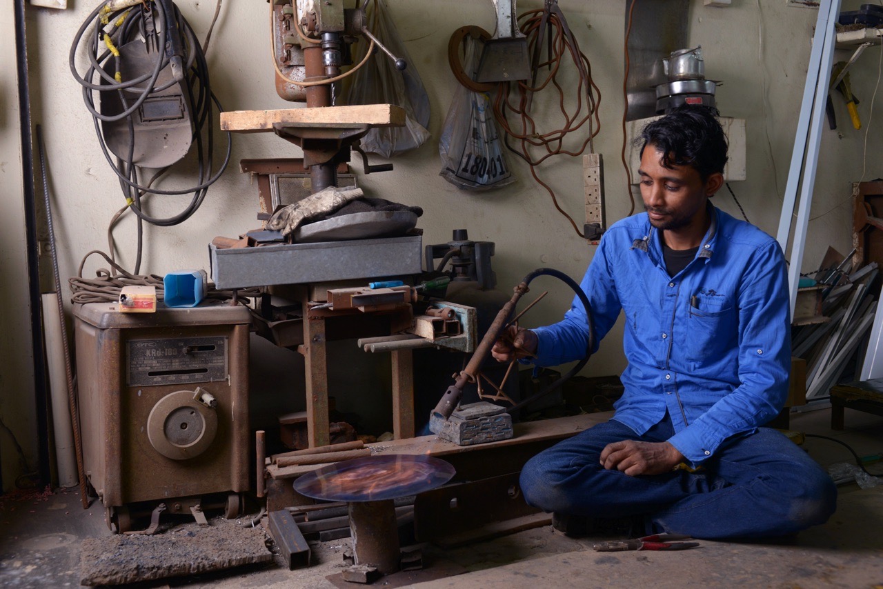 Saffar Metalware creates renewed desirability for the Saffar family’s historic craft of copper sinking, by contrasting new technology with the ancient technique of metal sinking. The products return vitality to the work conducted in Souq Alsaffar, which has shifted to low quality galvanised sheet products, and provides new opportunities for the craftsmen.
